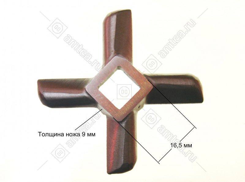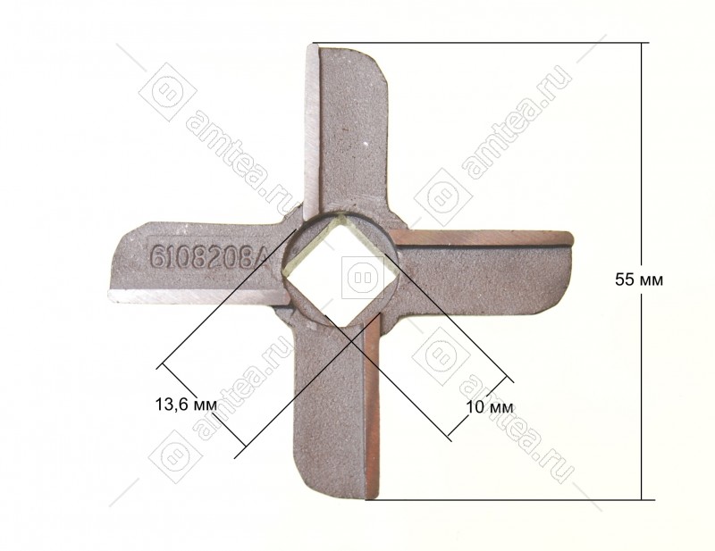 Ширина размаха лопастей 55 мм. Сторона внутреннего отверстия 10,5 мм. Толщина ножа 8.5 мм.