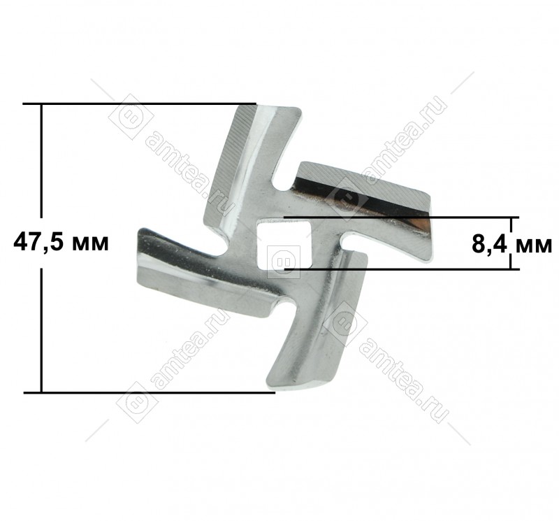 Ширина размаха лопастей 47.5 мм, сторона внутреннего отверстия 8.4 мм, толщина ножа 4.5 мм.