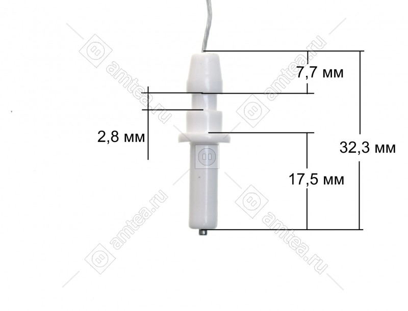 Свеча для электроподжига газовой плиты Gorenje. Может подойти для плит других марок, см. размеры. Длина общая 415 мм. Наиболее распространенная причина выхода из строя - пробой изоляции провода или корпуса самой свечи. При замене укладывайте провод избегая соприкосновения с корпусом, а также других токопроводящих частей плиты или поверхности.
