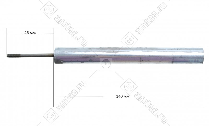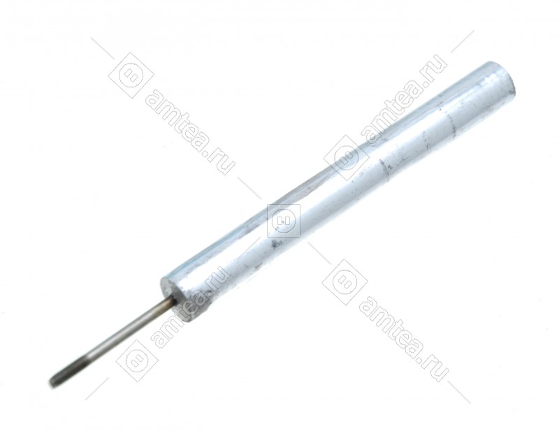 Анод – это тонкий круглый стержень, на который нанесен слой магниевого сплава. В центре этого стержня находится резьбовая шпилька М4, М6, М8 и тд.при помощи которой он крепится рядом с ТЭНом.Задача анода – предотвращение образования накипи на ТЭНе. При нагревании воды накипь образуется в результате выпавших в осадок солей тяжелых металлов. За счет повышенной активности магния они вступают в реакцию с ним, а не с железом, из которого сделаны стенки бака. Плотная, как камень, накипь, делается рыхлой, отделяется от стенок бака и ТЭНа и хлопьями осаждается на дно. Мягкую накипь легко удалить во время чистки прибора.