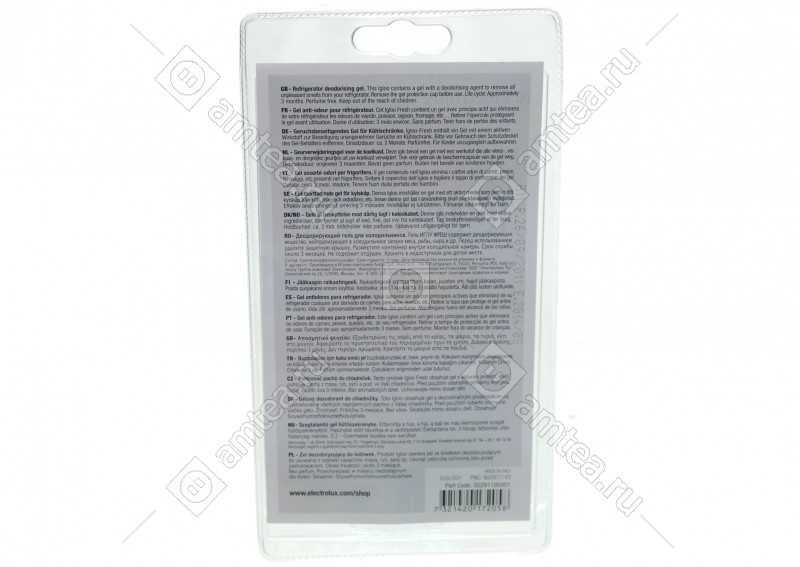 Гель, уничтожающий неприятный запах в холодильниках. Не содержит ароматизаторов и, следовательно, не влияет на вкусовые качества продуктов. Способ применения. Достать средство из блистерной упаковки. Снять верхнюю часть корпуса, удалить защитную крышку с геля, поставить верхнюю часть корпуса на место. Поместить средство внутрь холодильника. Медленно испаряясь, гель связывает запахи сыров, рыбы, мяса и т.д.. При понижении уровня геля до мимнимума следует подумать о замене. Срок действия - примерно 3 месяца. Состав: Сояэтилморфолинетосульфат.