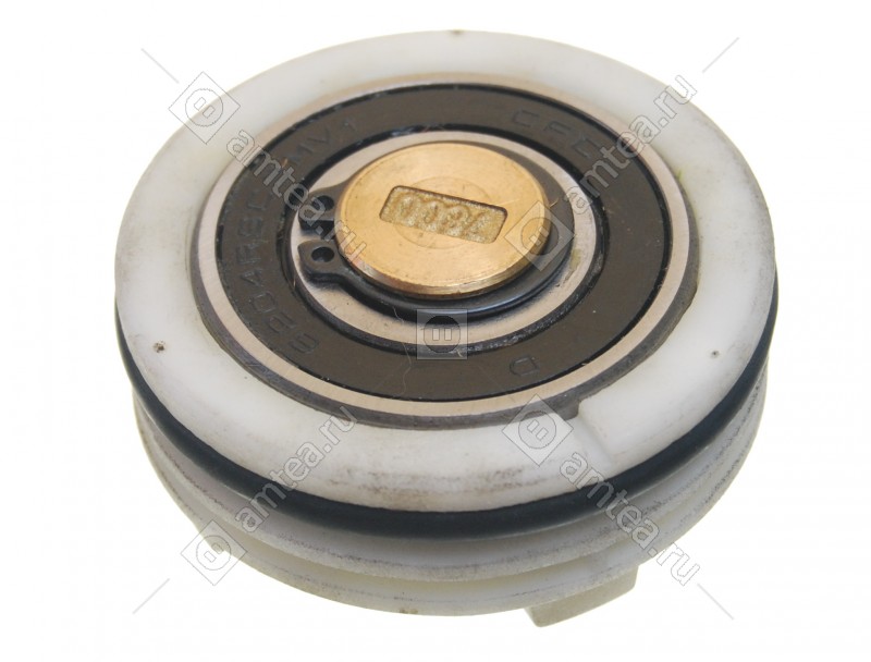 Против шкива. В комплект входит подшипник 6204, сальник для стиральных машин ARDO.